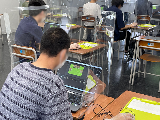 今日は3年のeスポーツ・プログラミング講座がありました。 条件分岐のプログラミングを駆使してRPGを作っています。 少しずつですが、操作にも慣れ、自分のペースで進めることができました。 【新型コロナウイルス感染対策】 本校ではソーシャルディスタンスを保ち、飛沫防止パーテーションを設置する等感染対策も万全なのでご安心ください。